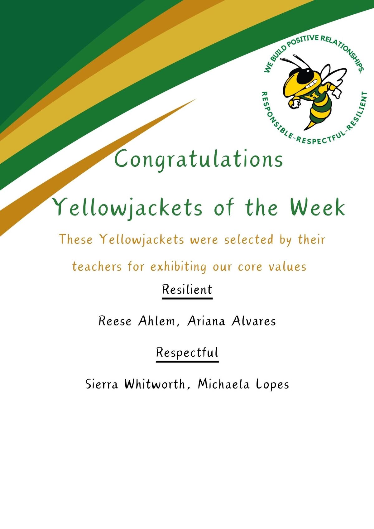 Yellowjackets of the Week